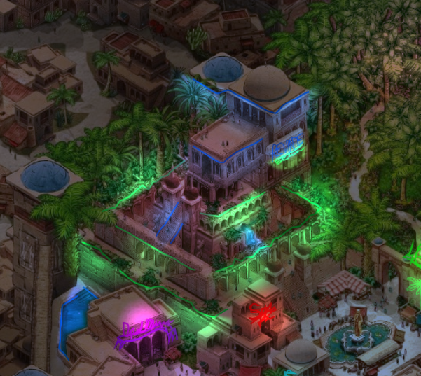 The city of Eden is an oasis within the Hellfire Wastes, accessible only by a long trek through the desert, typically from the nearby port town. Despite being in the wastes, it’s a lush, almost fantasy city — many people who have been there describe it as so outlandish that those who haven’t seen it for themselves have trouble believing it. It’s a city of wealth, luxury and convenience, yet they do not trade this with anyone else