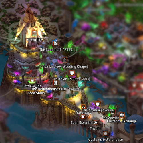A shrine to bow before Xowi and offer him tribute, in the form of Xowidowis, the currency exclusive to Eden. Offering him tribute is said to bring good fortune.