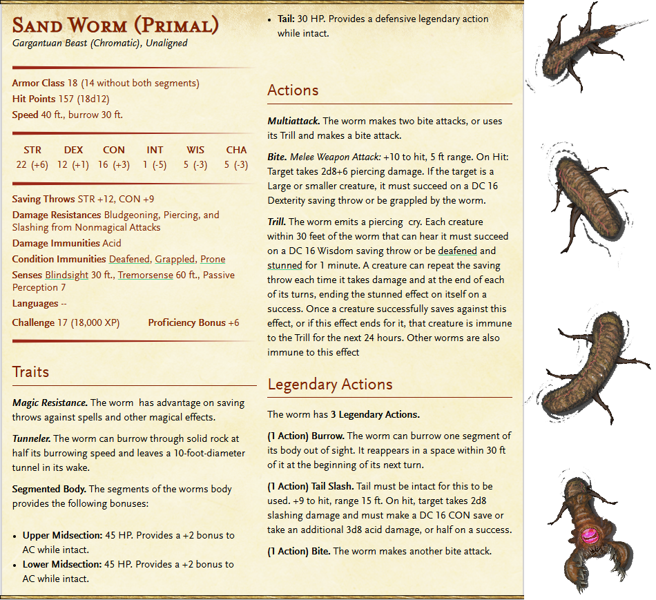 other minor encounter (sand worm) i would use combat minor playlist. the item is something i let them make out of the parts they harvested.