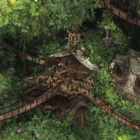 Ābi Zafi is the “capital” of the southern jungle.  The jungle knows no formal city-state limits like the North, and instead the cities are delegated with their own power due to the inherently isolating danger of the dark undergrowth. This city knows a bit more freedom and trade due to its heavily guarded port connection.