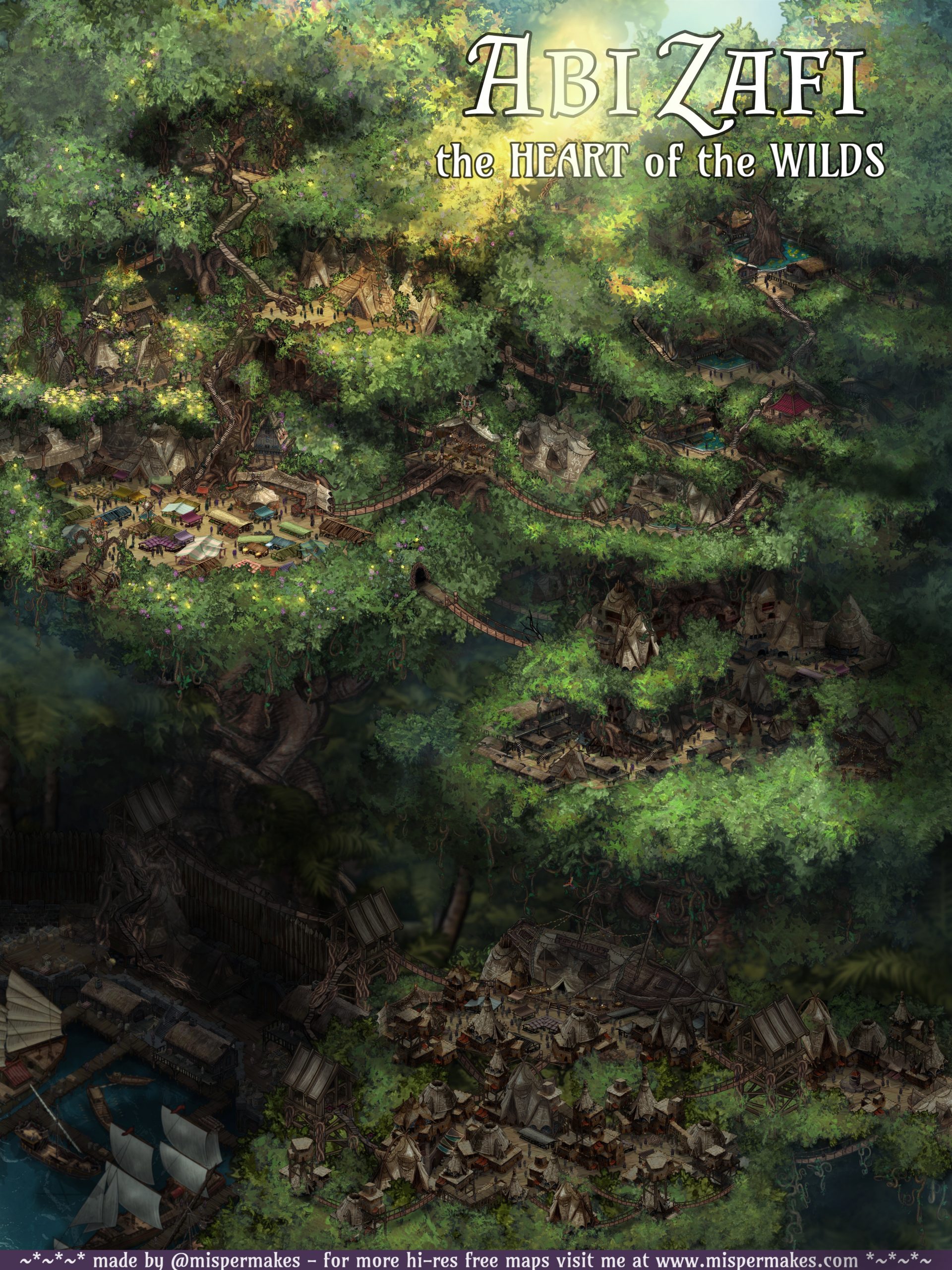 Abi Zafi – 4k HI-RES Elven Treetop City Map – with and without text